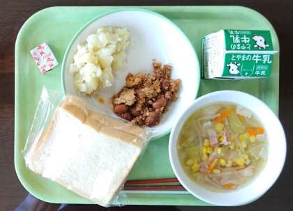 6月5日(月)本日の給食 公開日 2023/06/05 更新日 2023/06/05 その他 本日の給食メニューは・・・、 食パン 牛乳 チリコンカン こふきいも キャベツスープ ポケットチーズ でした。 「チリコンカン」は、ひき肉と玉ねぎ等の野菜を炒め、豆やトマト、スパイスと一緒に煮込んだ、メキシコ料理が由来とされるアメリカ南部テキサス州発祥の郷土料理です。 今日もおいしい給食を楽しくいただきました。ありがとうございました!