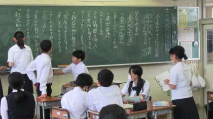 6月6日(火)宿泊学習に向けて【1年生】 公開日 2023/06/07 更新日 2023/06/07 学び合い認め合う学習 1年生は、7月6日(木)〜7月7日(金)の2日間、砺波青少年自然の家で1泊2日の宿泊学習を実施します。本日の学級活動では、「スローガン」と「ルールやマナー」について学級討議を行いました。1カ月後となった宿泊学習に向けて、順調に事前学習が進められています。