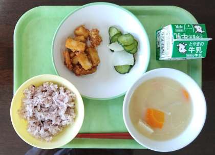 雑穀入りごはん 牛乳 いかのかりん揚げ