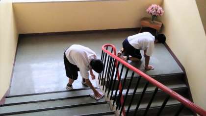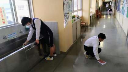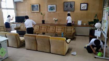 6月9日(金)「黙動気付き清掃」の取組 公開日 2023/06/09 更新日 2023/06/09 生徒の活動紹介 6限の授業が終了し、15分間の清掃時間となりました。今日も、生徒たちは伝統の「黙動気付き清掃(黙って清掃、気付いて清掃)」に一生懸命に取り組みました。素晴らしい!
