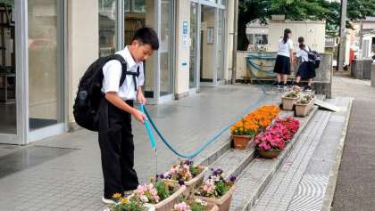 一足早く登校した生活奉仕委員会の皆さんが花の水やりをしてくれていました。毎朝、ありがとうございます!