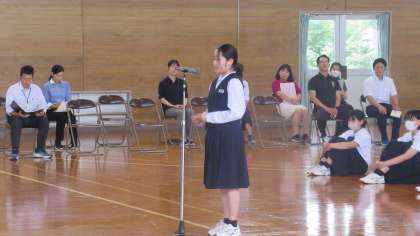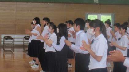 本日5限に6月16日(金)〜6月18日(日)に開催される「富山市中学校総合選手権大会」の壮行会を行いました。堂々と入場する選手たちの姿と各部の部長の気持ちのこもった抱負の発表に、体育館内は大きな拍手でいっぱいでした。大会での各部の健闘を祈ります。