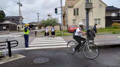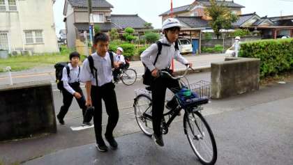 自転車通学生もヘルメットを着用して安全に登校しました。