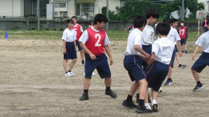 本日5限・6限に生徒会執行部が企画・運営する「月中スポーツ大会」を開催しました。各クラス2〜3グループを編制し、全11チームが学年の枠をこえてスポーツ交流を行うことで、全校生徒の仲を深めることが目的です。生徒たちは、先輩・後輩を意識しながらも、競技中は「月中スポーツ大会 ルール」を守りながら、思いっきりプレーを楽しんでいました。