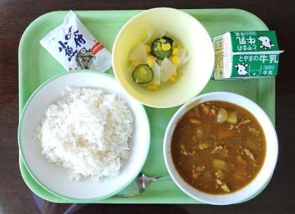 6月21日(水)本日の給食 公開日 2023/06/21 更新日 2023/06/21 その他 本日の給食メニューは・・・、 ごはん 牛乳 カレーライス 大根サラダ 味付け小魚 でした。 「カレーライス」は、カレーを米飯にかけて食べる料理で、子供から大人まで多くの人に好まれています。現在では「カレーライス」と呼ぶことが主流になっていますが、昔は「ライスカレー」とも呼んでいたようです。 今日もおいしい給食を楽しくいただきました。ありがとうございました!