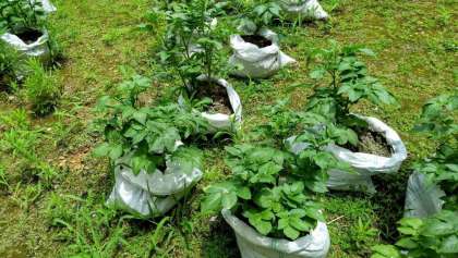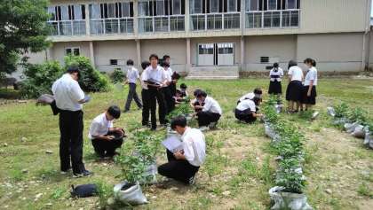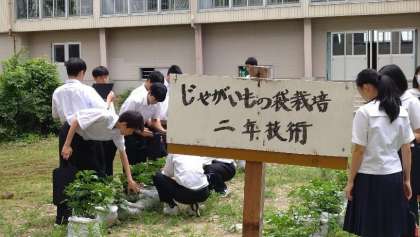 7月3日(月)中庭の様子(その1) 公開日 2023/07/03 更新日 2023/07/03 学び合い認め合う学習 本日4限の2年技術科「じゃがいもの袋栽培」の授業では、じゃがいもの生育状況を確認し、来週予定している収穫に向けて手入れを行いました。いよいよ、収穫の日が近付いてきました。