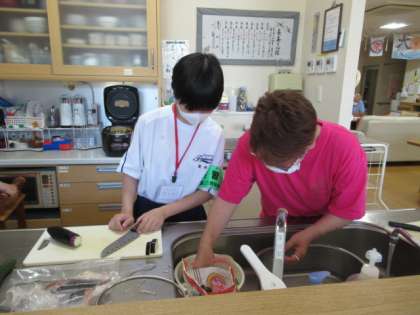 「14歳の挑戦」 7月4日 やまゆり 公開日 2023/07/04 更新日 2023/07/04 学び合い認め合う学習 やまゆりでは、昼食づくり等を行っていました。料理の切り方や材料の切る順番なども教えていただきながら作業を進めていました。
