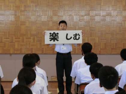 校長先生のお話では、どのようなことを意識して校外学習に臨めばよいのかを話していただきました。「安心・安全」「楽しむ」「挨拶」「感謝」「ありがとう」のキーワードを示しながら、それを自分たちの手で実行し達成することの大切さについて話していただきました。