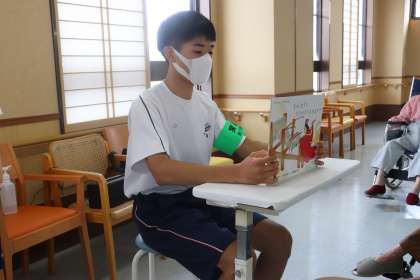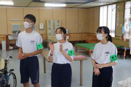 「14歳の挑戦」 7月5日 誠友病院 公開日 2023/07/05 更新日 2023/07/05 学び合い認め合う学習 誠友病院では、血圧測定や車いすの疑似体験等、とても貴重な経験をしています。今日は七夕会があり、紙芝居を読んだり歌を歌ったりしました。患者さんに喜んでいただけて嬉しい気持ちになりました。