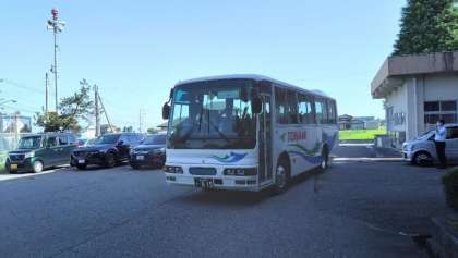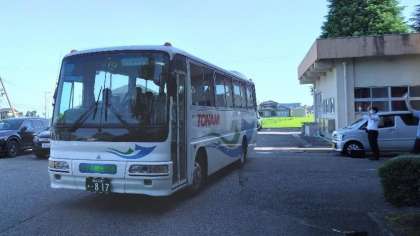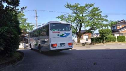 各クラスのバスが学校を出発しました。「行ってらっしゃい!」