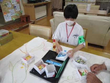 「14歳の挑戦」 7月6日 やまゆり 公開日 2023/07/06 更新日 2023/07/06 学び合い認め合う学習 やまゆりでは、昼食づくりのお手伝いをしたり、利用者さんとコミュニケーションをとりながらちぎり絵を進めたりしていました。
