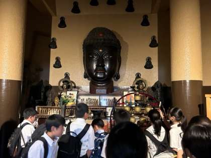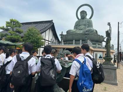 午後は、クラスごとに分かれて、高岡大仏と御車山会館を見学します。