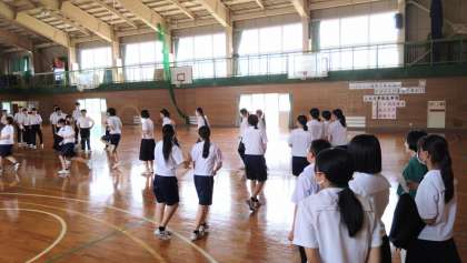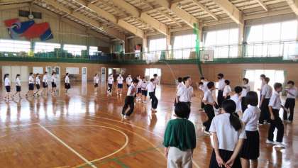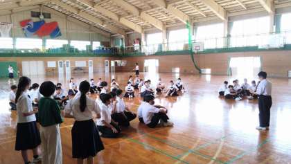 7月11日(火)昼休み 〜スポーツ交流会〜(その3) 公開日 2023/07/11 更新日 2023/07/11 生徒の活動紹介 保健体育委員会の企画活動「スポーツ交流会」の様子です。最後は、参加者全員が1列になり、連続で大縄をくぐり抜けていました。