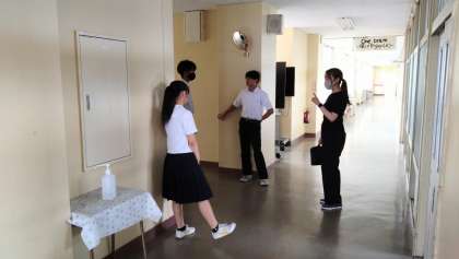 7月12日(水)挨拶運動 Good Morning Word(その3) 公開日 2023/07/13 更新日 2023/07/13 生徒の活動紹介 3年生の担当班の様子です。今日、GL(Grace Leader)となって異なる挨拶を交わしている生徒は・・・誰?