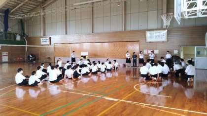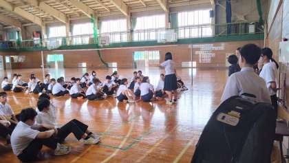 保健体育委員会の企画活動「スポーツ交流会」第4日の様子です。今日は風船を使って「風船運びリレー」を行う予定でしたが、参加者が多く、説明と準備でタイムアップとなりました。「風船運びリレー」は、スポーツ交流会の取組期間を1日延長し、7月18日(火)放課後に実施します。