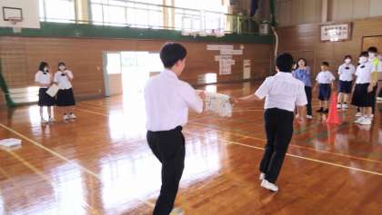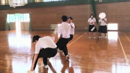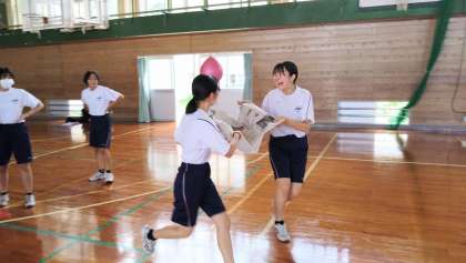 新聞紙の上の風船は、なかなか思い通りになってはくれません。