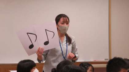7月21日(金)小中連携「月岡小出前授業」(その2) 公開日 2023/07/24 更新日 2023/07/24 学び合い認め合う学習 小学校6年生、中学校音楽科教員による体験授業の様子です。今日は、リズムを身体全体を使って表現する学習をしました。