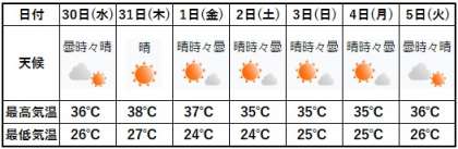 8月30日(水)明日以降、猛暑日が続きます