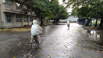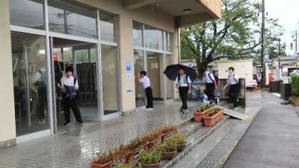 9月6日(水)朝の登校風景(その1) 公開日 2023/09/06 更新日 2023/09/06 その他 「おはようございます!」 朝から強めの雨が降ったり、止んだりしています。徒歩通学生は傘を使って、自転車通学生は雨合羽を着用して、安全に登校してきました。