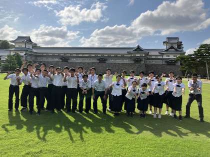 全ての班が時間に遅れず集合しました。広場でクラス写真を撮りました。