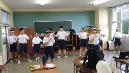 本日放課後より体育大会団リーダーの活動が本格的に始動しました。明日に控えた結団式のリハーサルを終え、早速、各団に分かれて団演技の確認と共通理解、練習に取り組みました。団リーダーと団員が心を一つにし、素晴らしい団演技となることを期待しています!