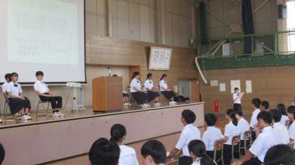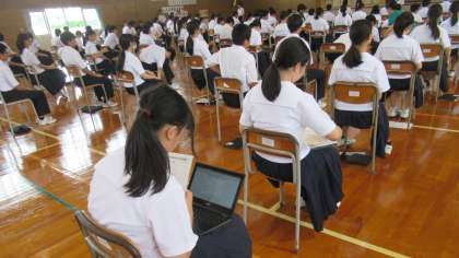 9月21日(木)生徒会役員選挙立会演説会&投票(その3) 公開日 2023/09/22 更新日 2023/09/22 学び合い認め合う学習 (上・中:投票上の注意 下:ChromeBookによるWeb投票)
