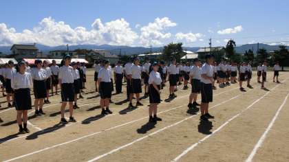 9月29日(金)体育大会 予行練習(その1) 公開日 2023/10/01 更新日 2023/10/01 学び合い認め合う学習 本日4限〜6限に体育大会に向けた予行練習を行い、プログラムの順に各係、選手が放送に合わせてそれぞれの動きを確認しました。