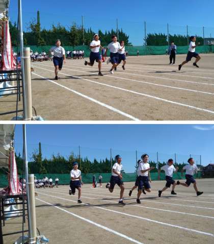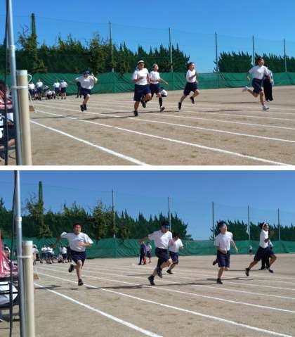 10月3日(火)体育大会 短距離走 公開日 2023/10/04 更新日 2023/10/04 学び合い認め合う学習 1年生、2年生、3年生ともに、精一杯の力を振り絞って全速力で走りきりました。 (上:1年 女子・男子 中:2年 女子・男子 下:3年 女子・男子)