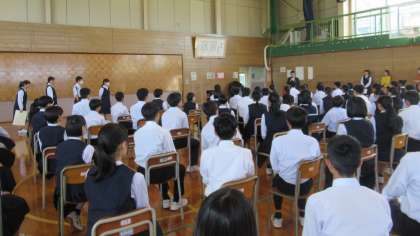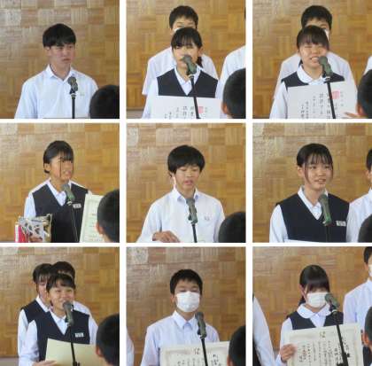 本日5限に受賞報告会を行いました。受賞した生徒たちは、スポーツ活動や文化活動での取組とその成果についてスピーチし、全校生徒が大きな拍手を贈りながら喜びを分かち合いました。