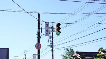 本日、月岡中学校前交差点の信号機の時間調整が行われ、より安心・安全に通行できるようになりました。東西方向の青信号の時間がこれまでよりも長くなり、南北方向の青信号の時間とほぼ同等になりました。
