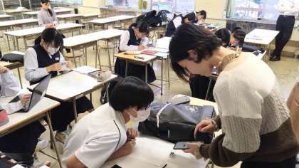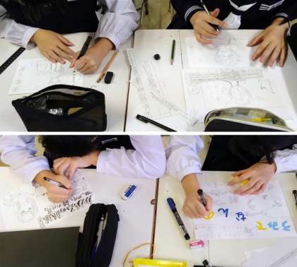10月20日(金)富大芸術文化学部との交流活動(その3) 公開日 2023/10/22 更新日 2023/10/22 学び合い認め合う学習 アドバイスを受けながらPOP制作が順調に進んでいます。素敵なPOP作品ができそうですね。完成が楽しみです。