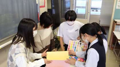 10月19日(木)・20日(金)の2日間、放課後に月岡校下自治振興会・教育後援会が企画する「みんなの推し本」の取組として、本校美術部の生徒と富山大学芸術文化学部の学生がPOP制作を通して交流活動を行っています。本日第2日も2名の学生が来校し、生徒たちとコミュニケーションをとりながらPOP制作のポイント等について積極的にアドバイスをしていただきました。
