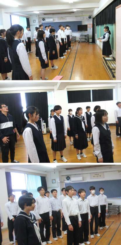 10月25日(水)終学活後の合唱練習(その1) 公開日 2023/10/26 更新日 2023/10/26 学び合い認め合う学習 合唱コンクールまであと3日となり、全クラス、気合い十分で練習に取り組みました。コンクール当日の美しいハーモニーに期待しています! 頑張れ、1年1組! 頑張れ、1年2組! 頑張れ、2年1組!