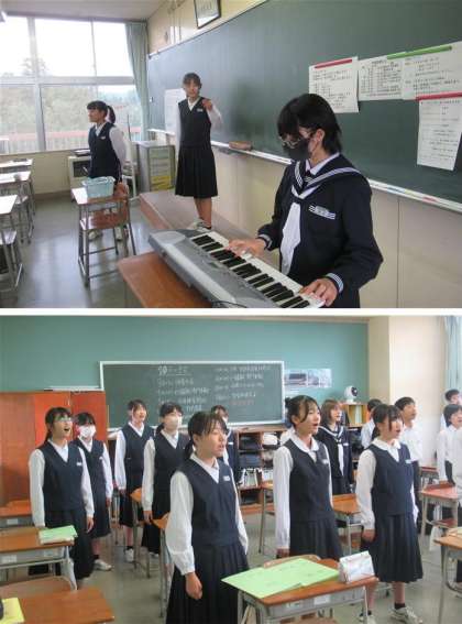 10月27日(金)全校音楽 〜合唱練習〜(その1) 公開日 2023/10/27 更新日 2023/10/27 学び合い認め合う学習 本日5限に明日の合唱コンクールに向けた最後の合唱練習を行いました。前日となり、生徒たちは本番に向けてさらに気持ちを高めていました。