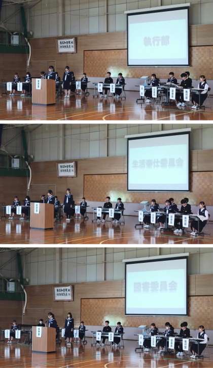 上から順に、(1)執行部 (2)生活奉仕委員会 (3)図書委員会