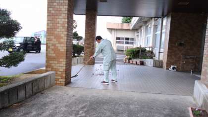11月7日(火)朝の登校風景(その3) 公開日 2023/11/07 更新日 2023/11/07 その他 生徒たちが登校する前から、用務員さんが昨日の強風で散乱した落ち葉や木の枝の回収作業を行ってくださいました。ありがとうございます!