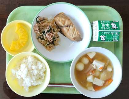 11月8日(水)本日の給食 公開日 2023/11/09 更新日 2023/11/09 その他 本日の給食メニューは・・・、 ごはん 牛乳 ふくらぎの西京焼き しらたきのピリ辛炒め 白玉汁 パインアップル でした。 「しらたきのピリ辛炒め」は、しらたきが柔らかく炒められており、ほんのり辛い味付けが美味しさをさらに引き立てていました。 今日もおいしい給食を楽しくいただきました。ありがとうございました!
