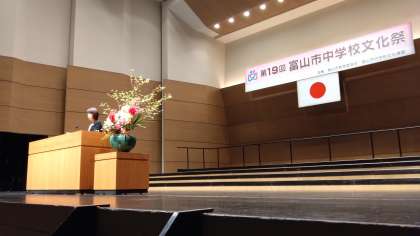 11月11日(土)にオーバード・ホールにおいて「第19回富山市中学校文化祭」が開催されました。本校からは作品展示(美術、手芸・被服、書道)、新聞、音楽発表の3つの部門に参加し、日頃の学習の成果を発表するとともに、文化的な交流を図りました。