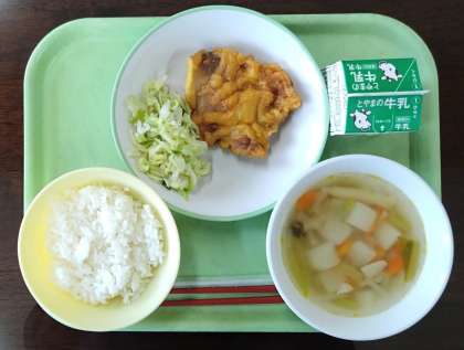 11月29日(水)本日の給食 公開日 2023/11/30 更新日 2023/11/30 その他 本日の給食メニューは・・・、 ごはん 牛乳 ポークパコラ ゆでキャベツ かぶのスープ でした。 「かぶのスープ」はかぶがとろけるように柔らかく、今が旬であるかぶの味を十分に満喫することができました。 ※かぶを最もおいしくいただける旬の時期は、11月頃から1月頃の寒い 時期とされています。 今日もおいしい給食を楽しくいただきました。ありがとうございました!