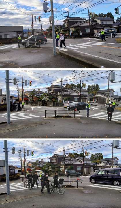 毎月1日と15日は「交通安全県民の日」です。月岡中学校前の交差点では、今朝も地域の交通安全指導員の皆さん(4名)が生徒の安心・安全な登校を見守ってくださいました。