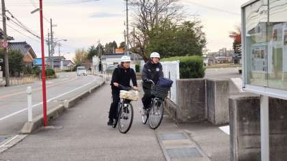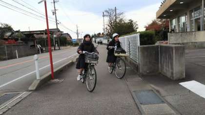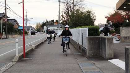 12月5日(火)朝の登校風景(その2) 公開日 2023/12/07 更新日 2023/12/07 その他 自転車通学生はヘルメットを正しく着用するとともに、交通ルールを守りながら安全に登校しています。