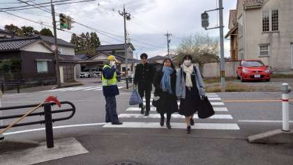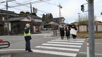 12月5日(火)朝の登校風景(その1) 公開日 2023/12/07 更新日 2023/12/07 その他 「おはようございます!」寒い朝となりました。 本日も徒歩通学生、自転車通学生、自家用車送迎による通学生ともに事故等なく安全に登校してきました。安心・安全な登下校について、ご家庭での様々なご配慮に心から感謝いたします。 今朝も地域の交通安全指導員の皆さんが生徒たちの安心・安全な登校を見守ってくださいました。いつも、ありがとうございます!