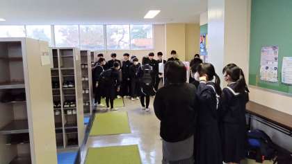 12月12日(火)朝の登校風景(その2) 公開日 2023/12/13 更新日 2023/12/13 その他 「月中Smile挨拶運動」の取組期間中です。生徒玄関では、「おはようございます!」と爽やかな挨拶の声が響いていました。グータッチやハイタッチ、エアータッチをする姿が微笑ましく感じられました。