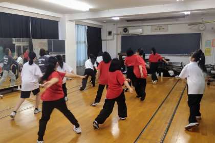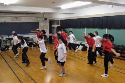 1月10日(水)特設部活動 〜ダンス部〜(その1) 公開日 2024/01/11 更新日 2024/01/11 部活動 毎週水曜日は常設の部活動がノー部活動デーとなり、特設の部活動(茶道部、ダンス部)の活動日となっています。 今日は、MARIE先生のご指導の下、ダンス部の皆さんが一生懸命に練習に励んでいました。