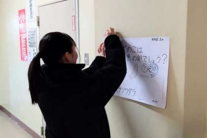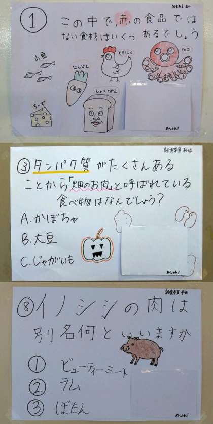 昨日の放課後、校舎内では給食委員長がクイズの掲示作業に取り組んでいました。