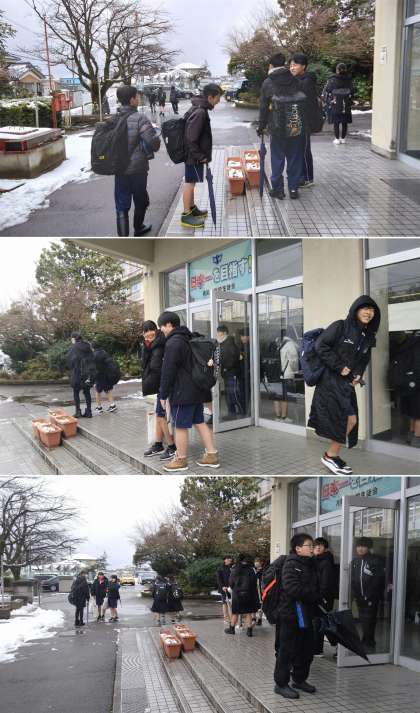1月15日(月)下校の様子 公開日 2024/01/15 更新日 2024/01/15 その他 今日は富山市内一斉に教員研修会が行われ、生徒たちは午後から放課となりました。「また、明日!」と笑顔で手を振る皆さんを、明日も学校で待っています!