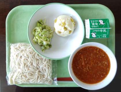 1月16日(火)本日の給食 公開日 2024/01/16 更新日 2024/01/16 その他 本日の給食メニューは・・・、 ソフト麺 牛乳 ソフト麺のミートソースかけ 蒸しパン グリーンサラダ でした。 給食の定番メニューである「ソフト麺」。いつ食べても、なつかしい味とそのおいしさに感動してしまいますね。 今日もおいしい給食を楽しくいただきました。ありがとうございました!