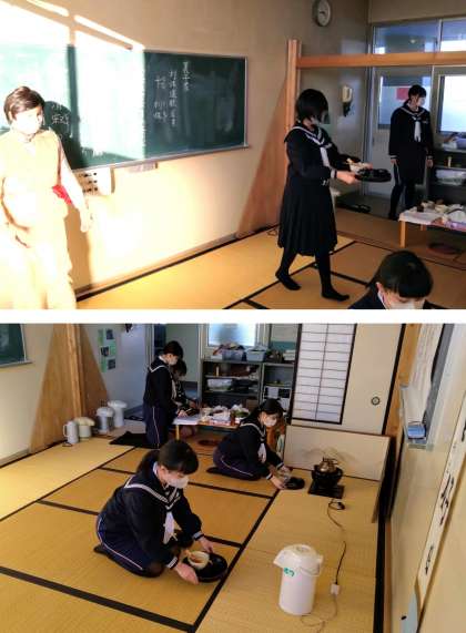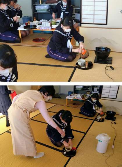 1月17日(水)特設部活動 〜茶道部〜(その3) 公開日 2024/01/18 更新日 2024/01/18 部活動 「お点前」を練習中です。講師の先生からアドバイスをいただきながら、上達を目指します。