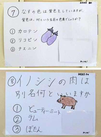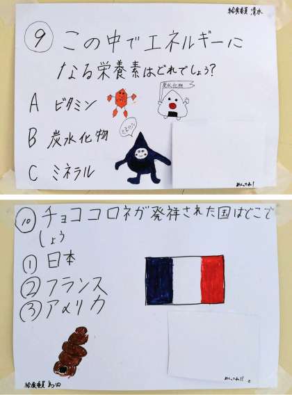 1月23日(火)廊下の掲示物 〜給食クイズ〜(その2) 公開日 2024/01/23 更新日 2024/01/23 学び合い認め合う学習 給食委員会企画「給食クイズラリー」問題6〜問題10を紹介します。