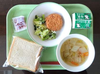 1月29日(月)本日の給食 公開日 2024/01/30 更新日 2024/01/30 その他 本日の給食メニューは・・・、 食パン 牛乳 メンチカツ いちごジャム 野菜のドレッシング和え はくさいスープ でした。 「はくさいスープ」は、はくさいのもつ食感とはくさいそのものの味を十分に味わうことができる抜群のスープでした。 今日もおいしい給食を楽しくいただきました。ありがとうございました!